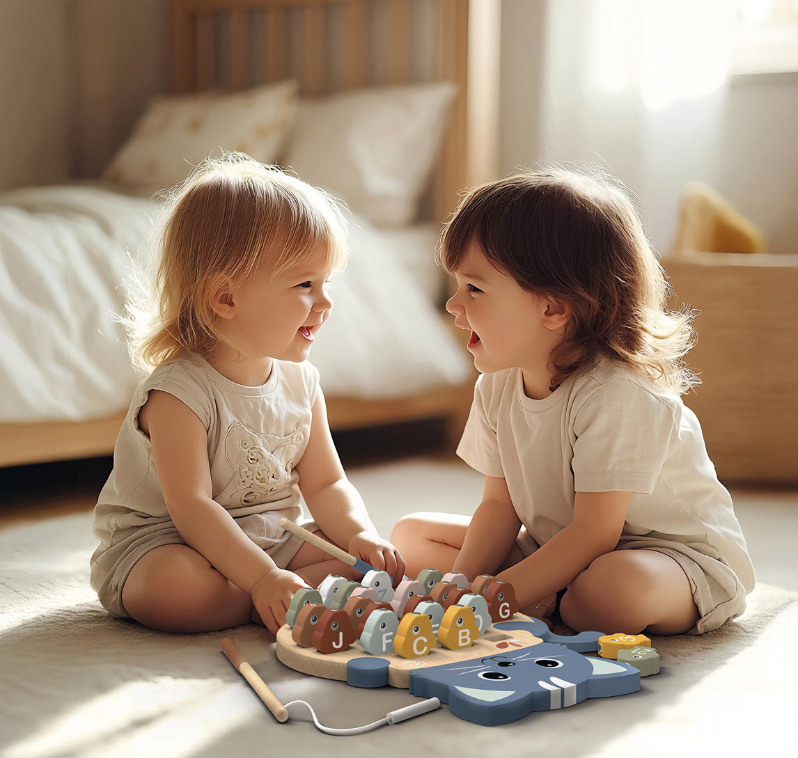 Reel in the fun and help toddlers learn the alphabet! With 26 lettered fish and 2 magnetic fishing rods, kids take turns "catching" letters, making it a perfect activity for solo or cooperative play. Kiddos learn to recognize the letters of the alphabet and can practice spelling simple words as they "go fish" and tally points using the numbers on the back of the fish. We love the high-quality wooden design and cat-shaped base.