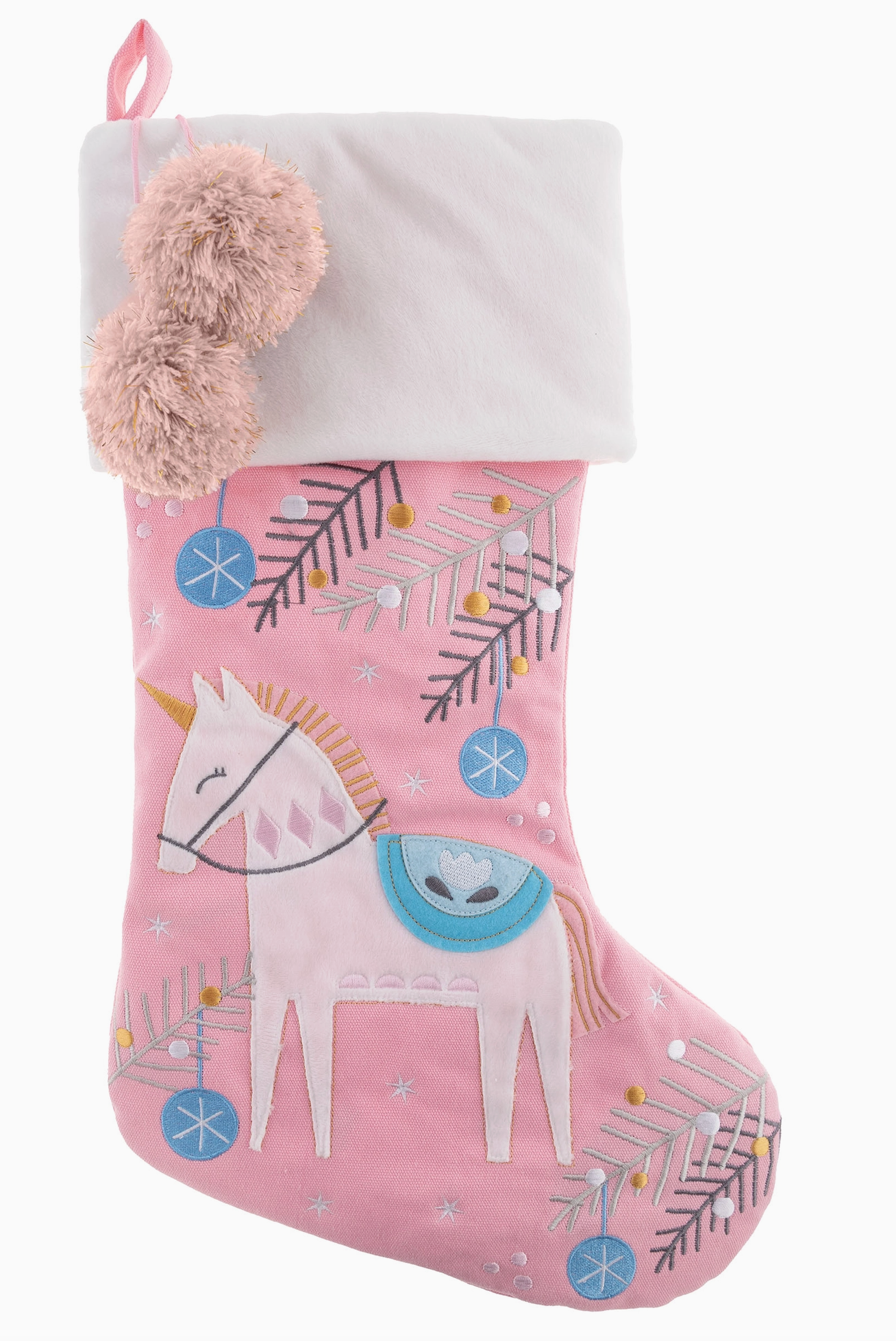 Our beautiful embroidered unicorn holiday stocking will look marvelous hanging from the mantel, and will withstand being filled to the brim with treats.