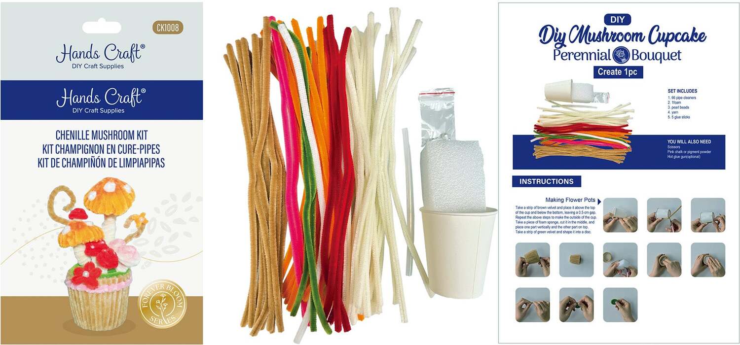 Sweet, quirky, and full of charm - this DIY kit includes everything you need to craft an adorable chenille mushroom cupcake.