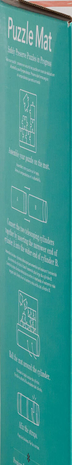 The Puzzle Mat by Galison will safely preserve your puzzles in progress. Premium felt fabric ensures your puzzle pieces stay in place so never lose a puzzle piece again! Included is a non-slip felt mat, two piece cardboard cylinder and three elastic straps.