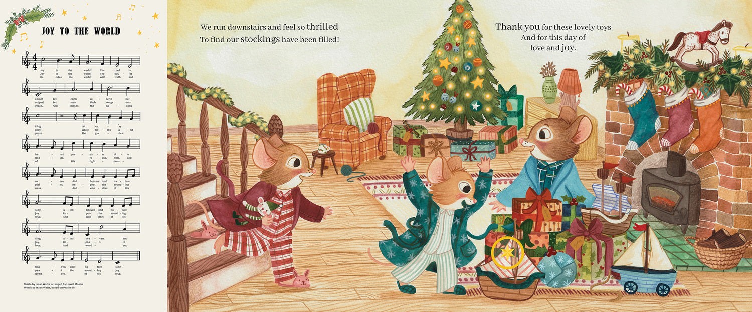 Christmas is coming! Follow the Mouse Family as they choose a Christmas tree, listen to carolers in the village square, wait for the arrival of Santa Claus, and more. Each step of their adventure is paired with a classic Christmas carol. Simply press the stars on the pages to hear the songs in this interactive sound book, which also includes sheet music for budding musicians.