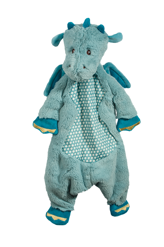 Lightweight and versatile, the Little Dragon Sshlumpie is part stuffed animal and part comforting blankie. Easy to pack or carry, he’ll always be there to ease away Baby’s fears and see them through their battles. Crafted in sumptuous plush with a sophisticated muted blue hue, Little Dragon is designed to soothe and delight. Bright, golden embroidery details his clawed feet, while a pair of soft wings completes his fairytale creature appearance.