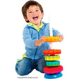 Here's a "twist" on the traditional stacker. This oversized and innovative toy features a corkscrew pole that spins and twirls each disc as it slides down the wobbly base! Big, durable plastic pieces are easy for little hands to grip. Lots of movement provides visual stimulation while encouraging hand-eye coordination, and it's fun! For ages 1-3 yrs, from Fat Brain Toys.