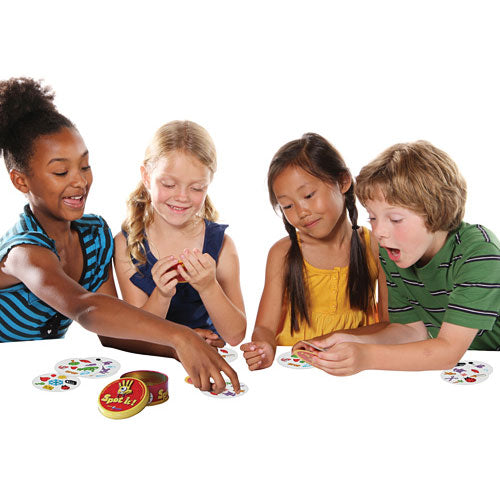 Spot It! is the addictive matching game for every generation. Each card has 8 symbols; 1 symbol is shared with every other card. Spot the matching symbol and shout it out! For 2–8 players. For ages 7 yrs-adult.