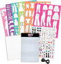 Aspiring fashion designers will love this perfectly light pad. Using this light pad, kids will learn the basics of fashion sketching by tracing the garments and accessories with the 6 sheets of vinyl fashion stencils and clings, and accessories. There is also included a large sheet of accent stickers to embellish the designs. This light pad is 6" x 9.5" and less than an inch thick, making it a great travel activity. Kids and parents love it because allows for open-ended creative thought making endless fashion designs.