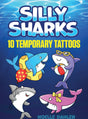 Kids will love showing off these 10 temporary tattoo designs, which include fun images of a shark dressed as a pirate, riding a surfboard, wearing sunglasses, and seven other playful pictures.