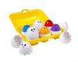 A half dozen cute, educational eggs packed with fun. Includes six bright colored chicks each in their own egg shell, nestled into a bold yellow egg carton.