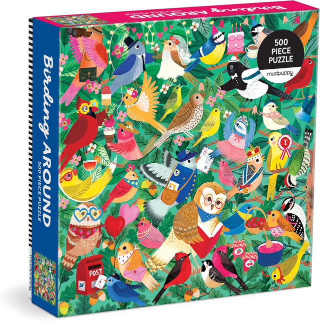 500 PIECE PUZZLE ā Embark on a delightful journey surrounded by avian friends and more with Mudpuppy's charming Birding Around 500-piece puzzle featuring artwork of happy birds. Each piece of this puzzle captures the playful antics and serene elegance of birds as they pop up amidst a lush atmosphere. As you unravel the puzzle's intricacies, feel the sense of accomplishment with each fitting piece, and witness the scene come to life before your eyes
