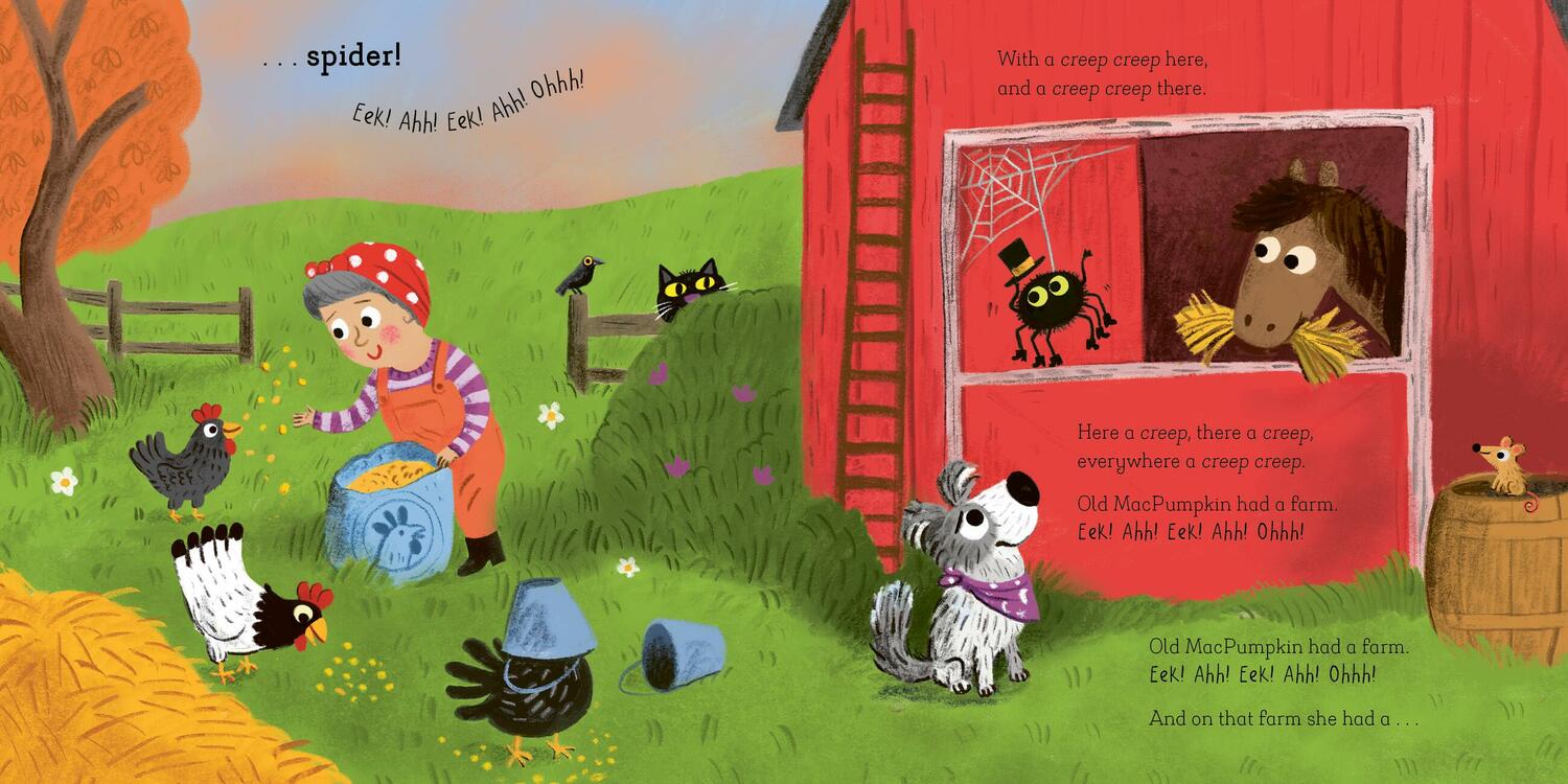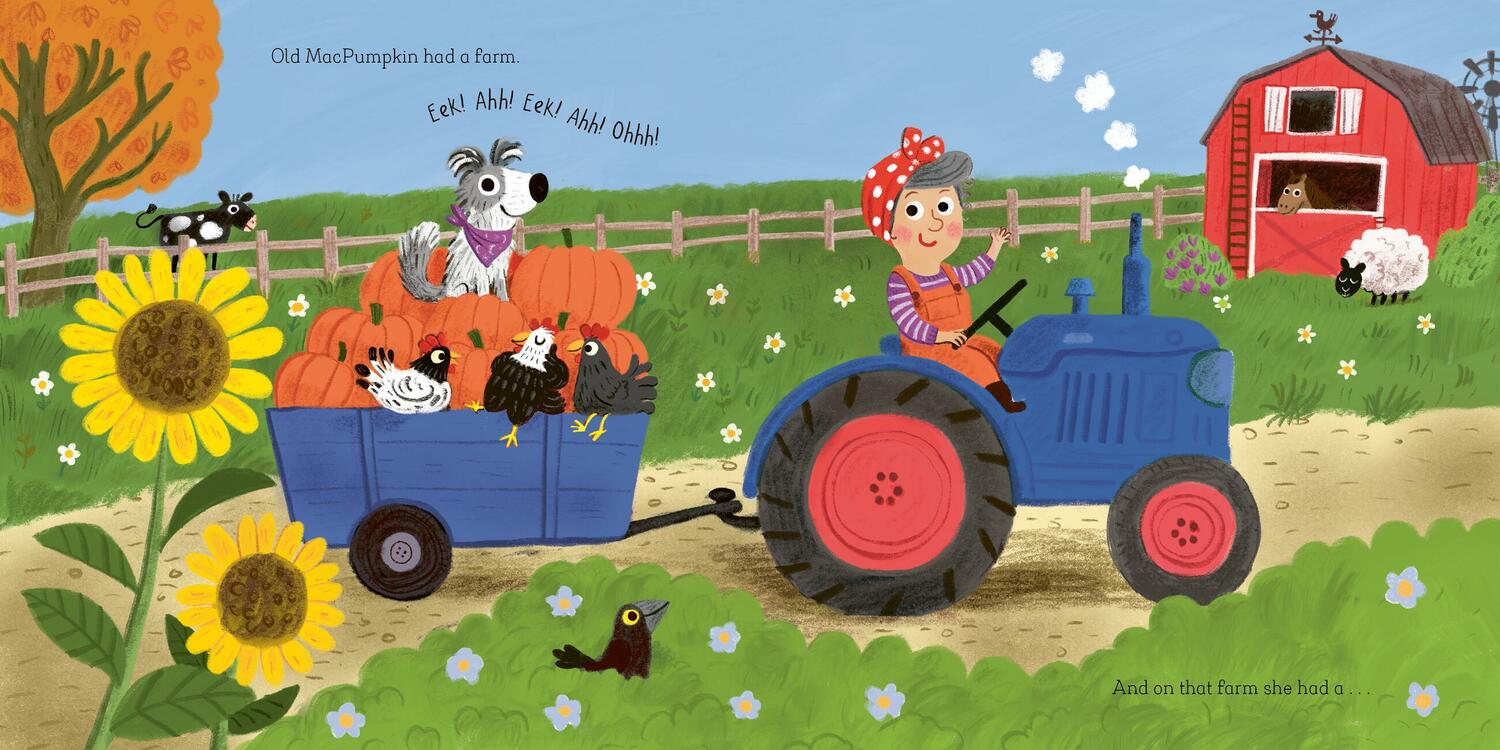 Old MacPumpkin had a farm. Eek! Ahh! Eek! Ahh! Ohhh! And on that farm she had . . . a cat, a bat, a spider, a skeleton, a witch, a ghost, and a MONSTER! Old MacPumpkin is too busy taking care of the farm animals to notice, until -Ā Knock! Knock!Ā Who's that at the door . . . ? With a playful text from Katrina Charman and quirky illustrations from award-winning Georgie Birkett, this is the perfect Halloween picture book!