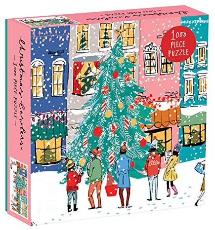 Celebrate the holidays with Christmas Carolers Square Boxed 1000 Piece Puzzle from Galison. Piece together to reveal a classic scene of friends and family caroling in the snow, illustrated by Louise Cunningham. Comes in a beautiful gift box.