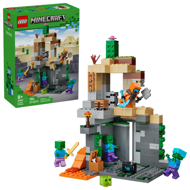 Take on a horde of Minecraft zombies with the LEGO Minecraft Zombie Dungeon (21587) building set for boys and girls 8 years old and up. Kids venture into a zombie dungeon filled with Minecraft characters, authentic gaming decor, plus fun features and accessories.