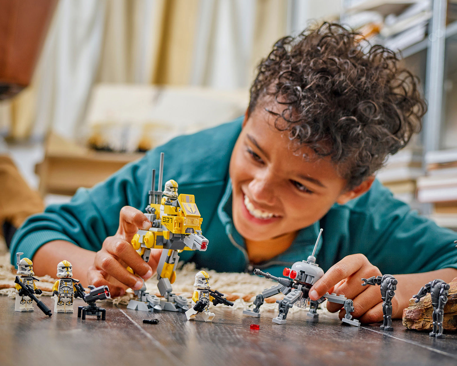 Introduce kids to the action-packed LEGO Star War universe and encourage them to become heroes in their own epic stories! This 258-piece set is easy and quick to build so kids can play right away. They'll explore a galaxy far, far away as the platoon of 327th Star Corps Clone Troopers take on the Super Battle Droids. Imaginations take flight as kiddos operate the AT-RT walker and stud shooters.