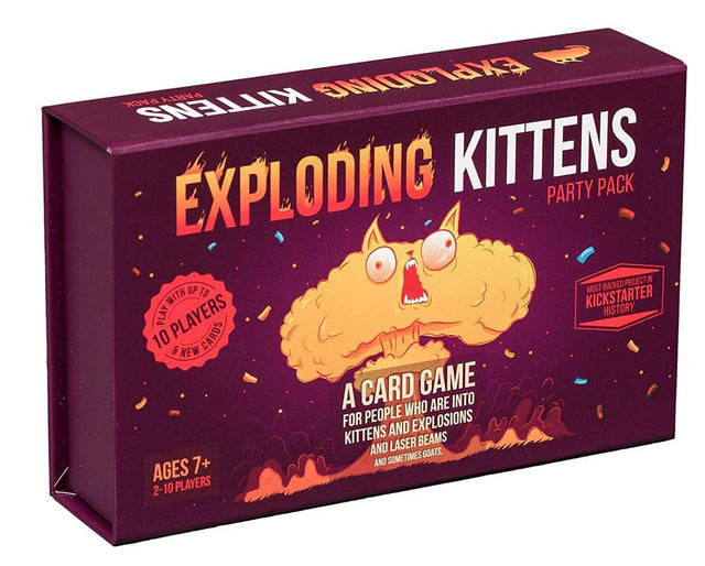 - The Party Pack is the same family-friendly party game as Exploding Kittens but now for up to 10 players!