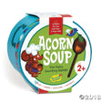 Making Acorn Soup is easy as 1-2-3! The round box bottom doubles as a bowl, which contains wooden ingredients and a sturdy wooden spoon for mixing and stirring. Simple recipe cards teach toddlers to identify the ingredients and count as they cook. Mix, stir, eat and play together! Counting, pretend play, sorting, fine-motor skills are benefits of this fun, interactive game! INCLUDES: 8 recipe cards, 24 ingredient tiles, 1 wooden spoon, parent guide and instructions.