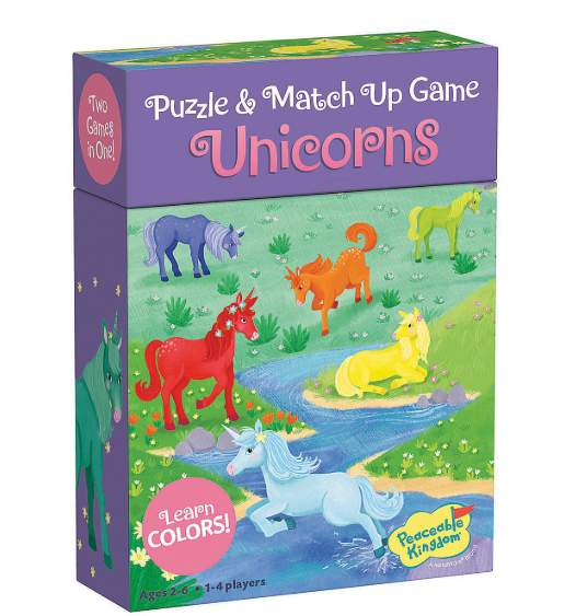 It's 3 games in one! Lay the cards face up for a matching game, face down for a memory game, or build a 24-piece floor puzzle. The vibrant and colorful art will appeal to unicorn-loving preschoolers.Ā
