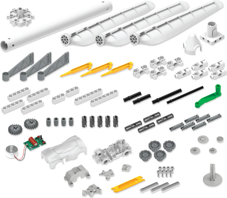 Experiment with the integrated hand crank to feel energy generation in your hands. Conduct experiments to optimize the turbineās performance by adjusting the angle of the blades and discover how to use the wind turbine to light up an LED. Quickly charge an electric capacitor to power a sleek electric car and demonstrate a tangible application for the stored electricity.