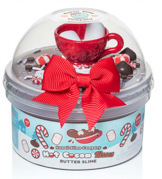 Get cozy with Hot Cocoa Kisses Butter Slime! Enjoy the sweet scent of hot cocoa while playing with the smooth buttery texture. It's packed with fun and cute charm shapes like chocolate chips, peppermint pieces, and clay marshmallows. Snuggle up and have some fun with this delightful slime!