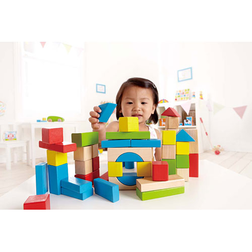 Hape's 50-piece block set is the perfect foundation for your young builder's living-room construction career. Crafted from solid maple and painted with a rainbow palette of child-safe water-based paints, Maple Blocks are designed to last through countless construction and demolition projects. For ages 12 months and up.